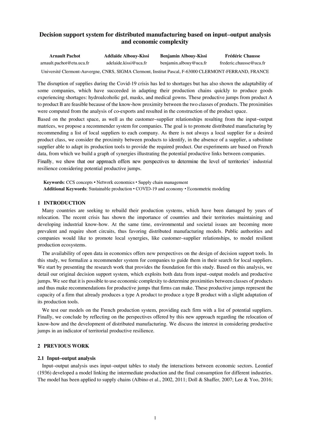 The disruption of supplies during the Covid-19 crisis has led to shortages but has also shown the adaptability of some companies, which have succeeded in adapting their production chains quickly to produce goods experiencing shortages: hydroalcoholic gel, masks, and medical gowns. These productive jumps from product A to product B are feasible because of the know-how proximity between the two classes of products. The proximities were computed from the analysis of co-exports and resulted in the construction of the product space. Based on the product space, as well as the customer-supplier relationships resulting from the input-output matrices, we propose a recommender system for companies. The goal is to promote distributed manufacturing by recommending a list of local suppliers to each company. As there is not always a local supplier for a desired product class, we consider the proximity between products to identify, in the absence of a supplier, a substitute supplier able to adapt its production tools to provide the required product. Our experiments are based on French data, from which we build a graph of synergies illustrating the potential productive links between companies. Finally, we show that our approach offers new perspectives to determine the level of territories' industrial resilience considering potential productive jumps.