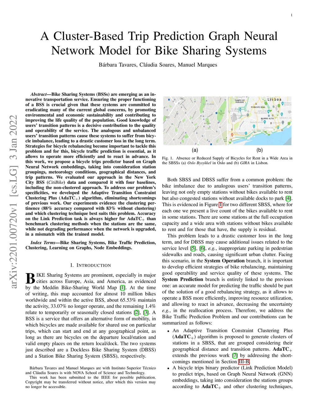 Bike Sharing Systems (BSSs) are emerging as an innovative transportation service. Ensuring the proper functioning of a BSS is crucial given that these systems are committed to eradicating many of the current global concerns, by promoting environmental and economic sustainability and contributing to improving the life quality of the population. Good knowledge of users' transition patterns is a decisive contribution to the quality and operability of the service. The analogous and unbalanced users' transition patterns cause these systems to suffer from bicycle imbalance, leading to a drastic customer loss in the long term. Strategies for bicycle rebalancing become important to tackle this problem and for this, bicycle traffic prediction is essential, as it allows to operate more efficiently and to react in advance. In this work, we propose a bicycle trips predictor based on Graph Neural Network embeddings, taking into consideration station groupings, meteorology conditions, geographical distances, and trip patterns. We evaluated our approach in the New York City BSS (CitiBike) data and compared it with four baselines, including the non-clustered approach. To address our problem's specificities, we developed the Adaptive Transition Constraint Clustering Plus (AdaTC+) algorithm, eliminating shortcomings of previous work. Our experiments evidence the clustering pertinence (88% accuracy compared with 83% without clustering) and which clustering technique best suits this problem. Accuracy on the Link Prediction task is always higher for AdaTC+ than benchmark clustering methods when the stations are the same, while not degrading performance when the network is upgraded, in a mismatch with the trained model.