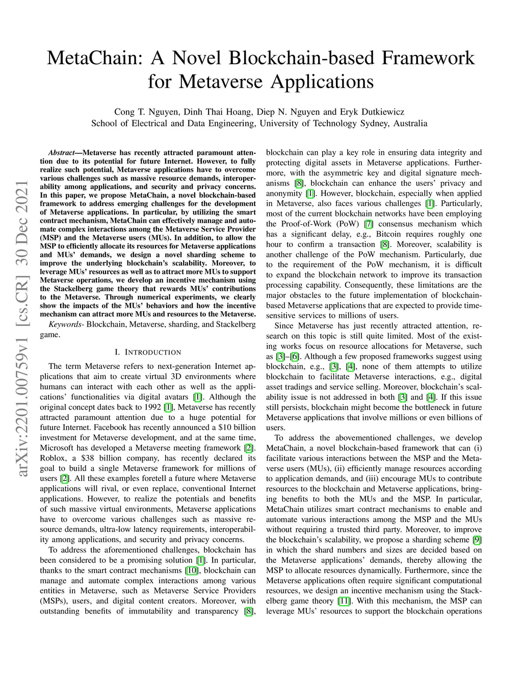 MetaChain: A Novel Blockchain-based Framework for Metaverse Applications