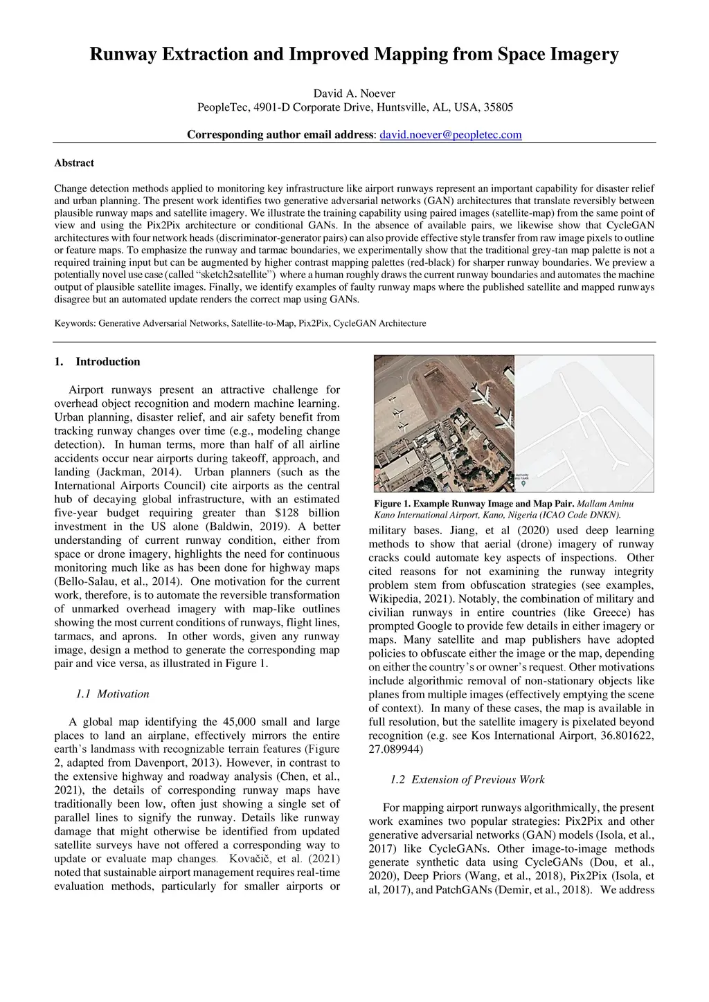 Change detection methods applied to monitoring key infrastructure like airport runways represent an important capability for disaster relief and urban planning. The present work identifies two generative adversarial networks (GAN) architectures that translate reversibly between plausible runway maps and satellite imagery. We illustrate the training capability using paired images (satellite-map) from the same point of view and using the Pix2Pix architecture or conditional GANs. In the absence of available pairs, we likewise show that CycleGAN architectures with four network heads (discriminator-generator pairs) can also provide effective style transfer from raw image pixels to outline or feature maps. To emphasize the runway and tarmac boundaries, we experimentally show that the traditional grey-tan map palette is not a required training input but can be augmented by higher contrast mapping palettes (red-black) for sharper runway boundaries. We preview a potentially novel use case (called "sketch2satellite") where a human roughly draws the current runway boundaries and automates the machine output of plausible satellite images. Finally, we identify examples of faulty runway maps where the published satellite and mapped runways disagree but an automated update renders the correct map using GANs.