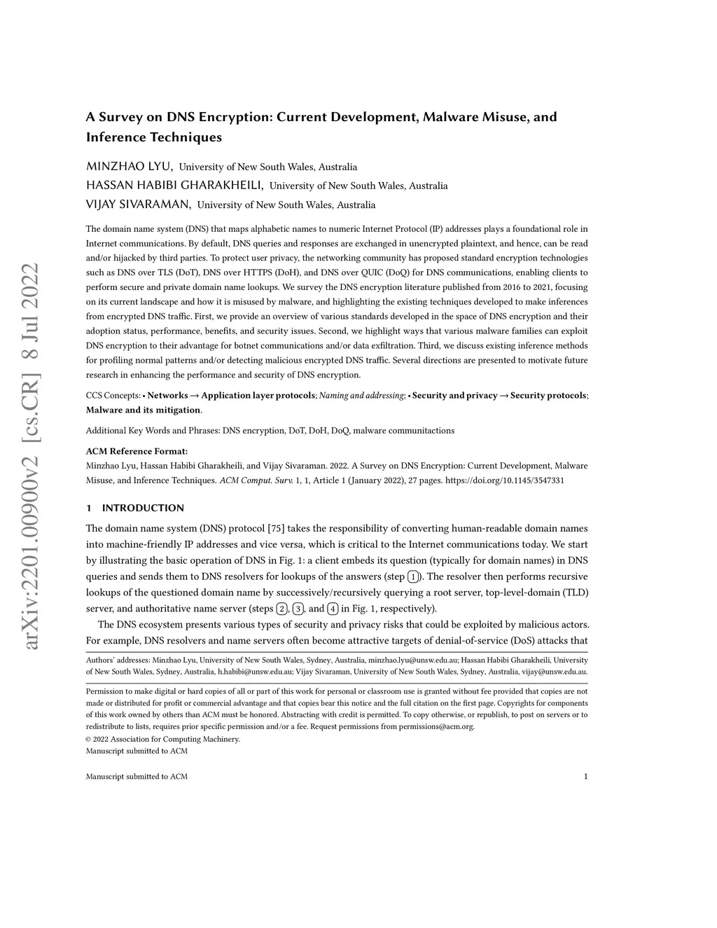 A Survey on DNS Encryption: Current Development, Malware Misuse, and