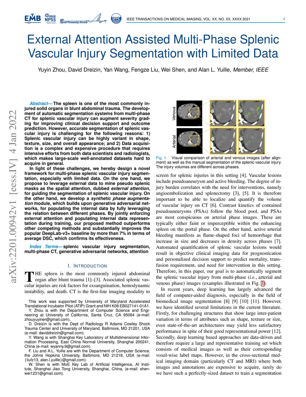 External Attention Assisted Multi-Phase Splenic Vascular Injury