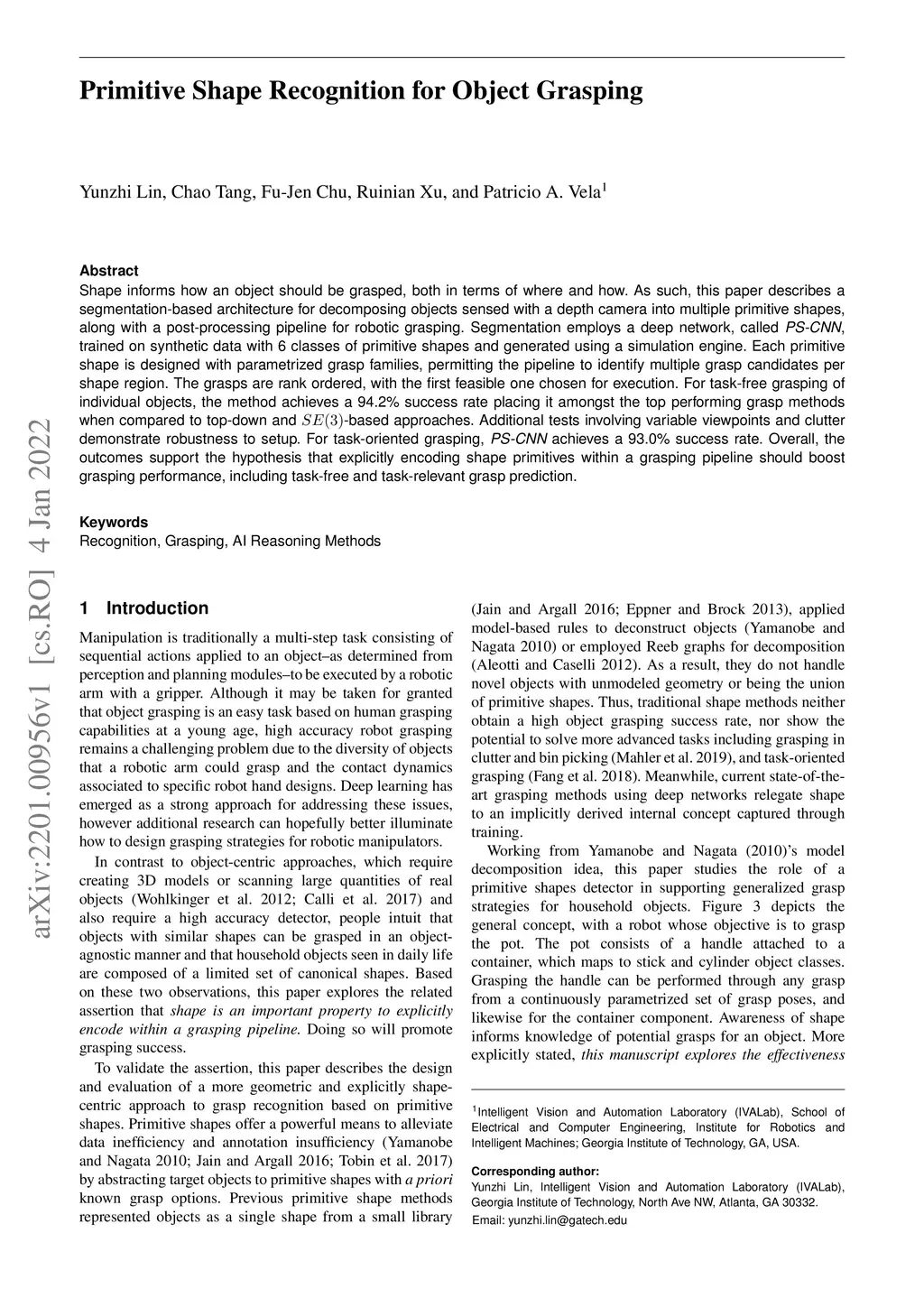 Shape informs how an object should be grasped, both in terms of where and how. As such, this paper describes a segmentation-based architecture for decomposing objects sensed with a depth camera into multiple primitive shapes, along with a post-processing pipeline for robotic grasping. Segmentation employs a deep network, called PS-CNN, trained on synthetic data with 6 classes of primitive shapes and generated using a simulation engine. Each primitive shape is designed with parametrized grasp families, permitting the pipeline to identify multiple grasp candidates per shape region. The grasps are rank ordered, with the first feasible one chosen for execution. For task-free grasping of individual objects, the method achieves a 94.2% success rate placing it amongst the top performing grasp methods when compared to top-down and SE(3)-based approaches. Additional tests involving variable viewpoints and clutter demonstrate robustness to setup. For task-oriented grasping, PS-CNN achieves a 93.0% success rate. Overall, the outcomes support the hypothesis that explicitly encoding shape primitives within a grasping pipeline should boost grasping performance, including task-free and task-relevant grasp prediction.