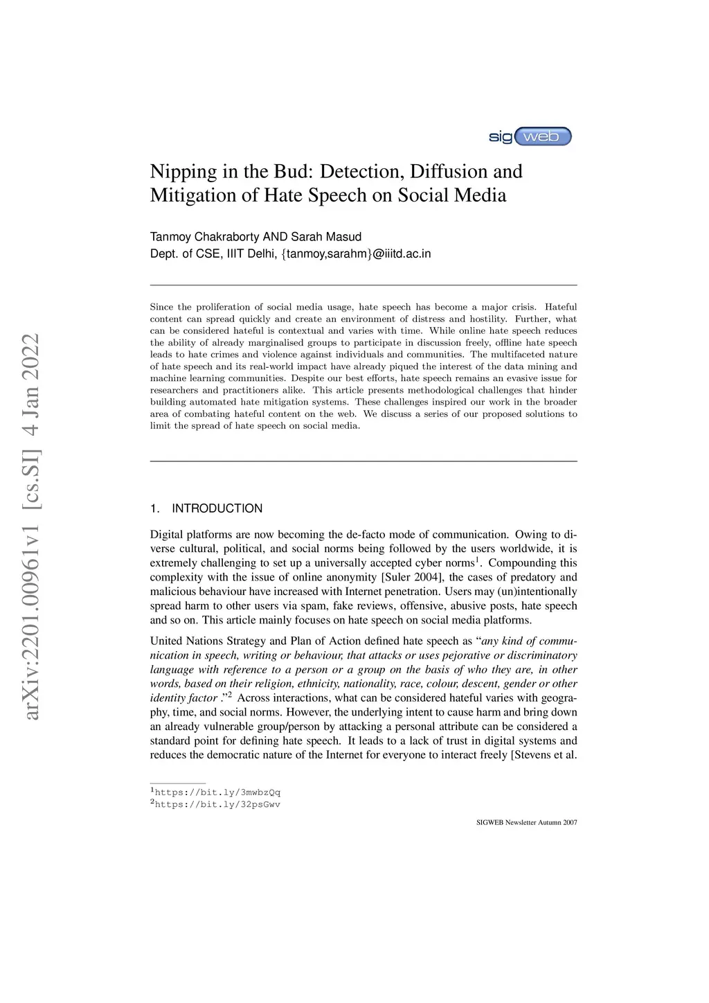 Since the proliferation of social media usage, hate speech has become a major crisis. Hateful content can spread quickly and create an environment of distress and hostility. Further, what can be considered hateful is contextual and varies with time. While online hate speech reduces the ability of already marginalised groups to participate in discussion freely, offline hate speech leads to hate crimes and violence against individuals and communities. The multifaceted nature of hate speech and its real-world impact have already piqued the interest of the data mining and machine learning communities. Despite our best efforts, hate speech remains an evasive issue for researchers and practitioners alike. This article presents methodological challenges that hinder building automated hate mitigation systems. These challenges inspired our work in the broader area of combating hateful content on the web. We discuss a series of our proposed solutions to limit the spread of hate speech on social media.