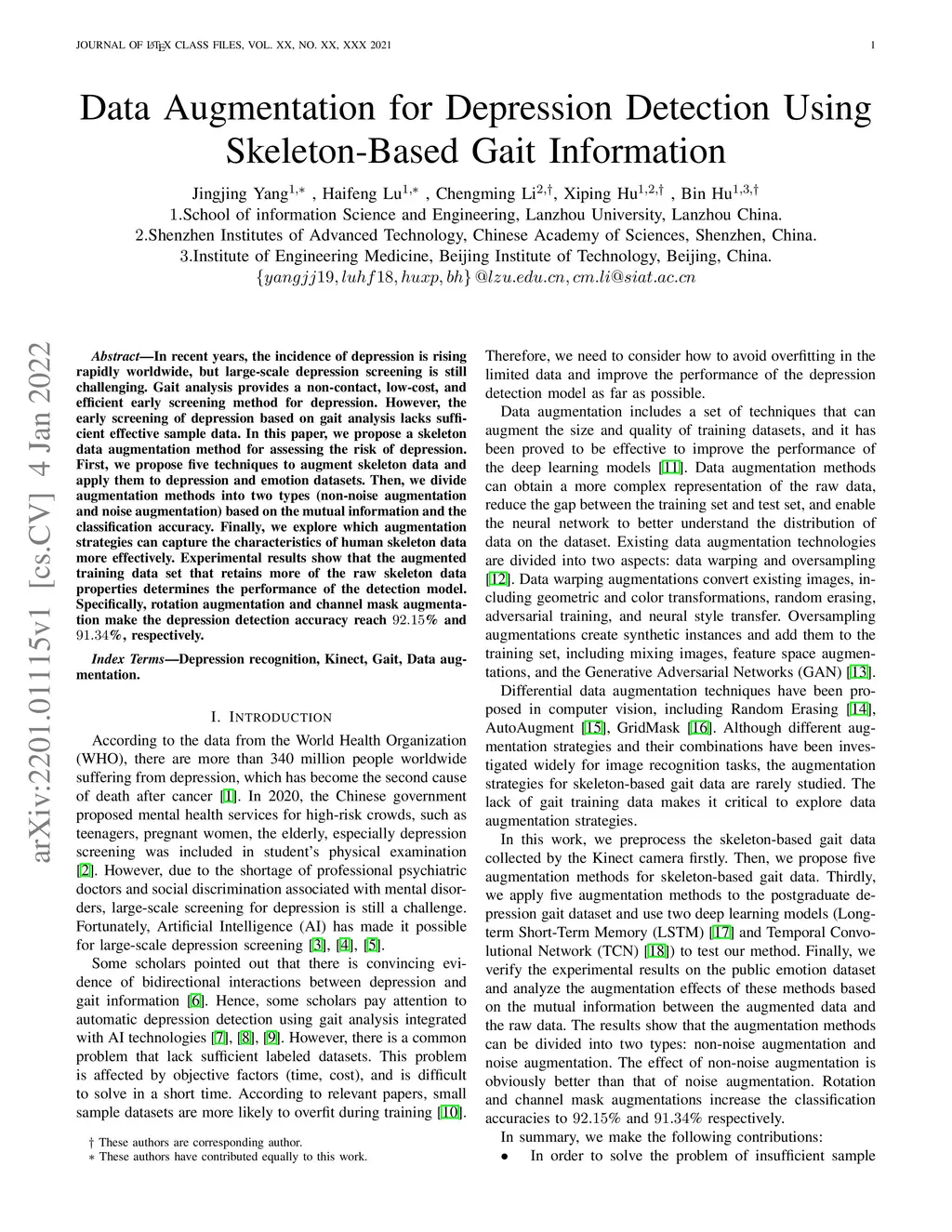 Data Augmentation for Depression Detection Using Skeleton-Based Gait