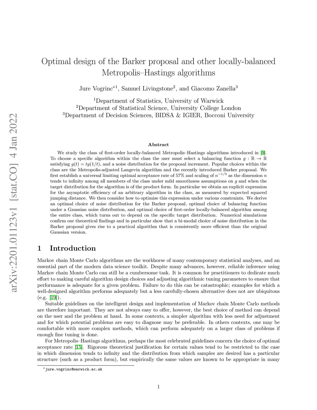 We study the class of first-order locally-balanced Metropolis--Hastings algorithms introduced in Livingstone & Zanella (2021). To choose a specific algorithm within the class the user must select a balancing function satisfying , and a noise distribution for the proposal increment. Popular choices within the class are the Metropolis-adjusted Langevin algorithm and the recently introduced Barker proposal. We first establish a universal limiting optimal acceptance rate of 57% and scaling of as the dimension tends to infinity among all members of the class under mild smoothness assumptions on and when the target distribution for the algorithm is of the product form. In particular we obtain an explicit expression for the asymptotic efficiency of an arbitrary algorithm in the class, as measured by expected squared jumping distance. We then consider how to optimise this expression under various constraints. We derive an optimal choice of noise distribution for the Barker proposal, optimal choice of balancing function under a Gaussian noise distribution, and optimal choice of first-order locally-balanced algorithm among the entire class, which turns out to depend on the specific target distribution. Numerical simulations confirm our theoretical findings and in particular show that a bi-modal choice of noise distribution in the Barker proposal gives rise to a practical algorithm that is consistently more efficient than the original Gaussian version.