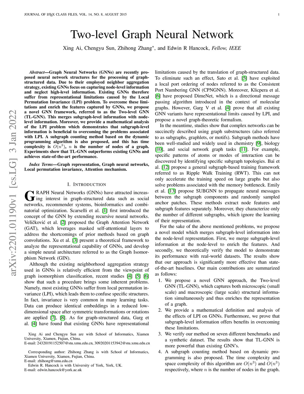 Graph Neural Networks (GNNs) are recently proposed neural network structures for the processing of graph-structured data. Due to their employed neighbor aggregation strategy, existing GNNs focus on capturing node-level information and neglect high-level information. Existing GNNs therefore suffer from representational limitations caused by the Local Permutation Invariance (LPI) problem. To overcome these limitations and enrich the features captured by GNNs, we propose a novel GNN framework, referred to as the Two-level GNN (TL-GNN). This merges subgraph-level information with node-level information. Moreover, we provide a mathematical analysis of the LPI problem which demonstrates that subgraph-level information is beneficial to overcoming the problems associated with LPI. A subgraph counting method based on the dynamic programming algorithm is also proposed, and this has time complexity is O(n^3), n is the number of nodes of a graph. Experiments show that TL-GNN outperforms existing GNNs and achieves state-of-the-art performance.