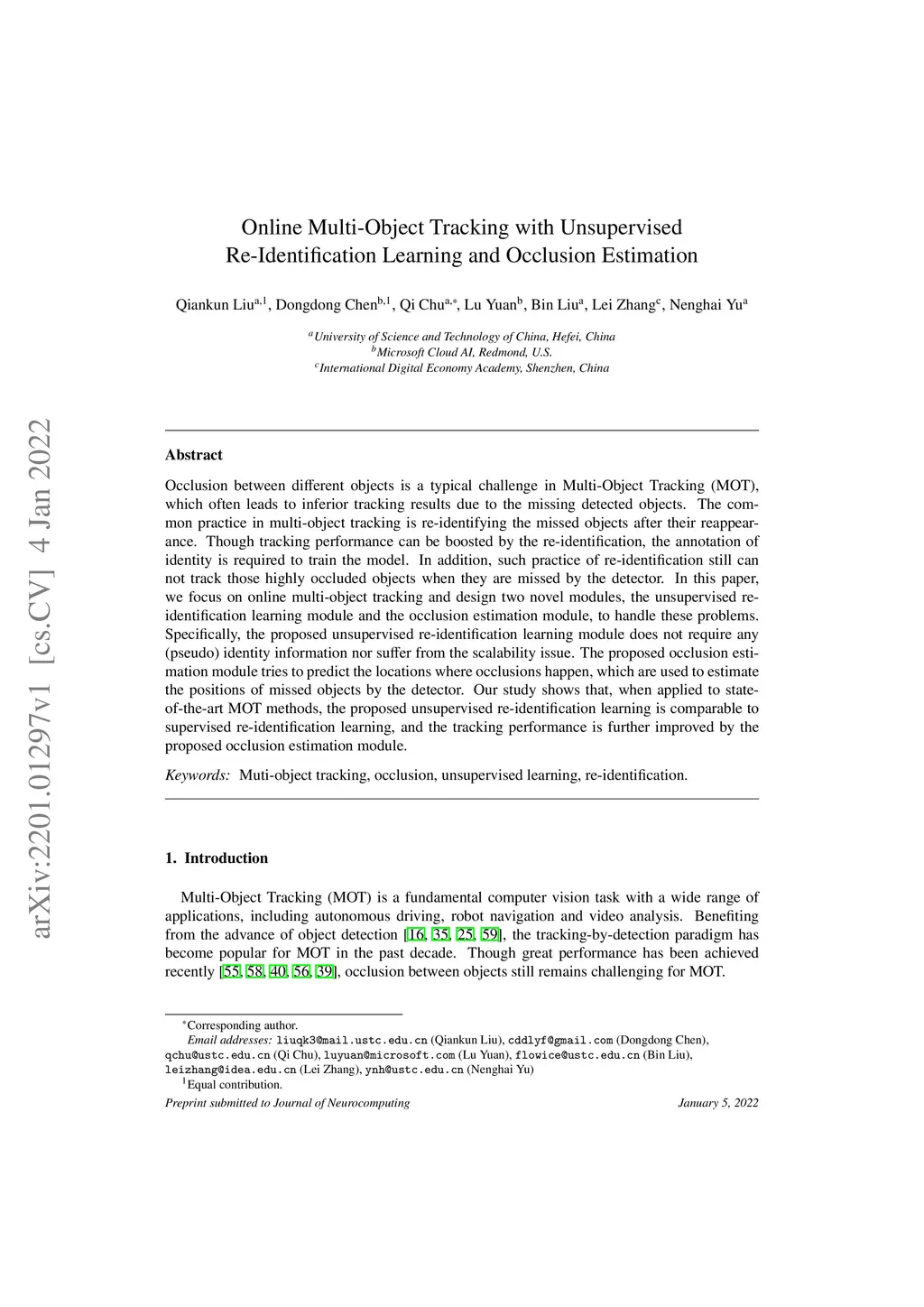 Occlusion between different objects is a typical challenge in Multi-Object Tracking (MOT), which often leads to inferior tracking results due to the missing detected objects. The common practice in multi-object tracking is re-identifying the missed objects after their reappearance. Though tracking performance can be boosted by the re-identification, the annotation of identity is required to train the model. In addition, such practice of re-identification still can not track those highly occluded objects when they are missed by the detector. In this paper, we focus on online multi-object tracking and design two novel modules, the unsupervised re-identification learning module and the occlusion estimation module, to handle these problems. Specifically, the proposed unsupervised re-identification learning module does not require any (pseudo) identity information nor suffer from the scalability issue. The proposed occlusion estimation module tries to predict the locations where occlusions happen, which are used to estimate the positions of missed objects by the detector. Our study shows that, when applied to state-of-the-art MOT methods, the proposed unsupervised re-identification learning is comparable to supervised re-identification learning, and the tracking performance is further improved by the proposed occlusion estimation module.