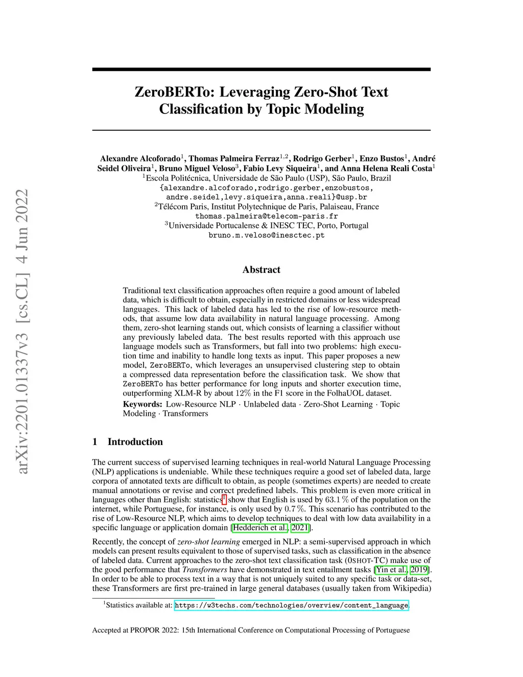 ZeroBERTo: Leveraging Zero-Shot Text Classification by Topic Modeling
