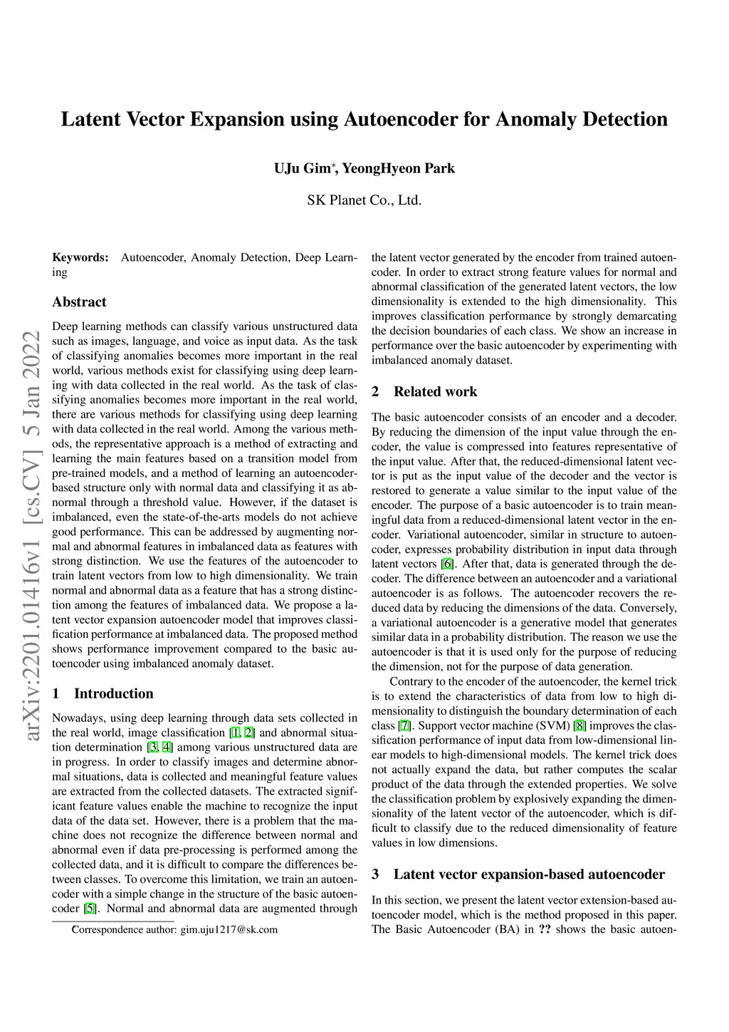 Latent Vector Expansion using Autoencoder for Anomaly Detection
