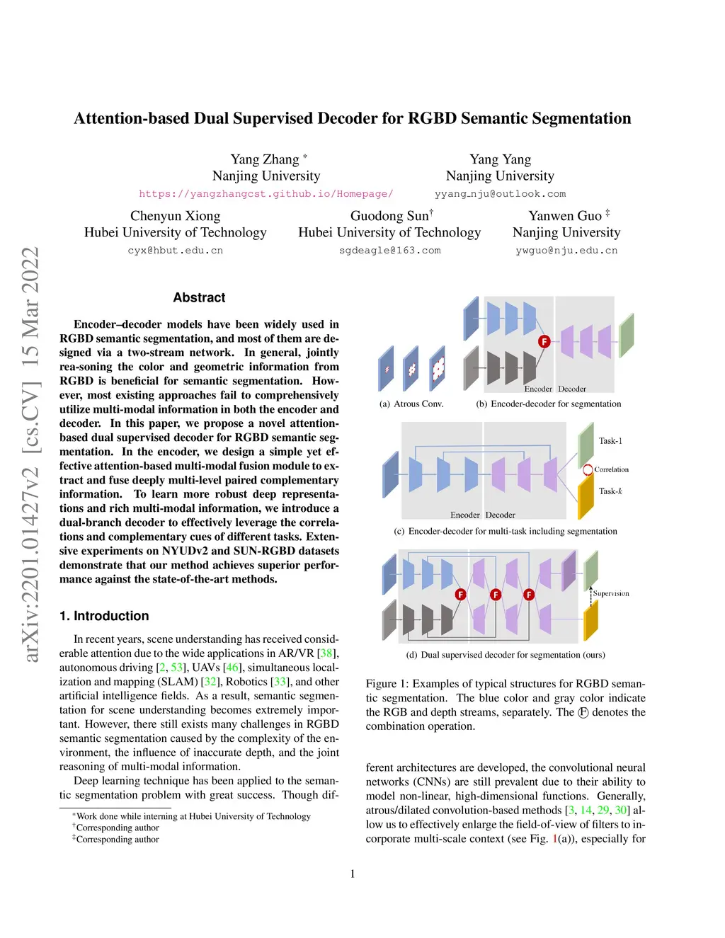 Attention-based Dual Supervised Decoder for RGBD Semantic Segmentation