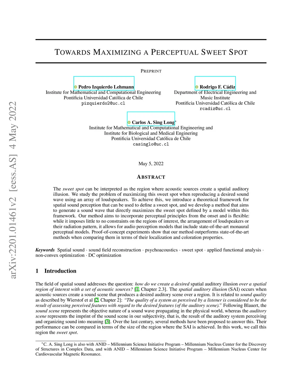 The sweet spot can be interpreted as the region where acoustic sources create a spatial auditory illusion. We study the problem of maximizing this sweet spot when reproducing a desired sound wave using an array of loudspeakers. To achieve this, we introduce a theoretical framework for spatial sound perception that can be used to define a sweet spot, and we develop a method that aims to generate a sound wave that directly maximizes the sweet spot defined by a model within this framework. Our method aims to incorporate perceptual principles from the onset and is flexible: while it imposes little to no constraints on the regions of interest, the arrangement of loudspeakers or their radiation pattern, it allows for audio perception models that include state-of-the-art monaural perceptual models. Proof-of-concept experiments show that our method outperforms state-of-the-art methods when comparing them in terms of their localization and coloration properties.