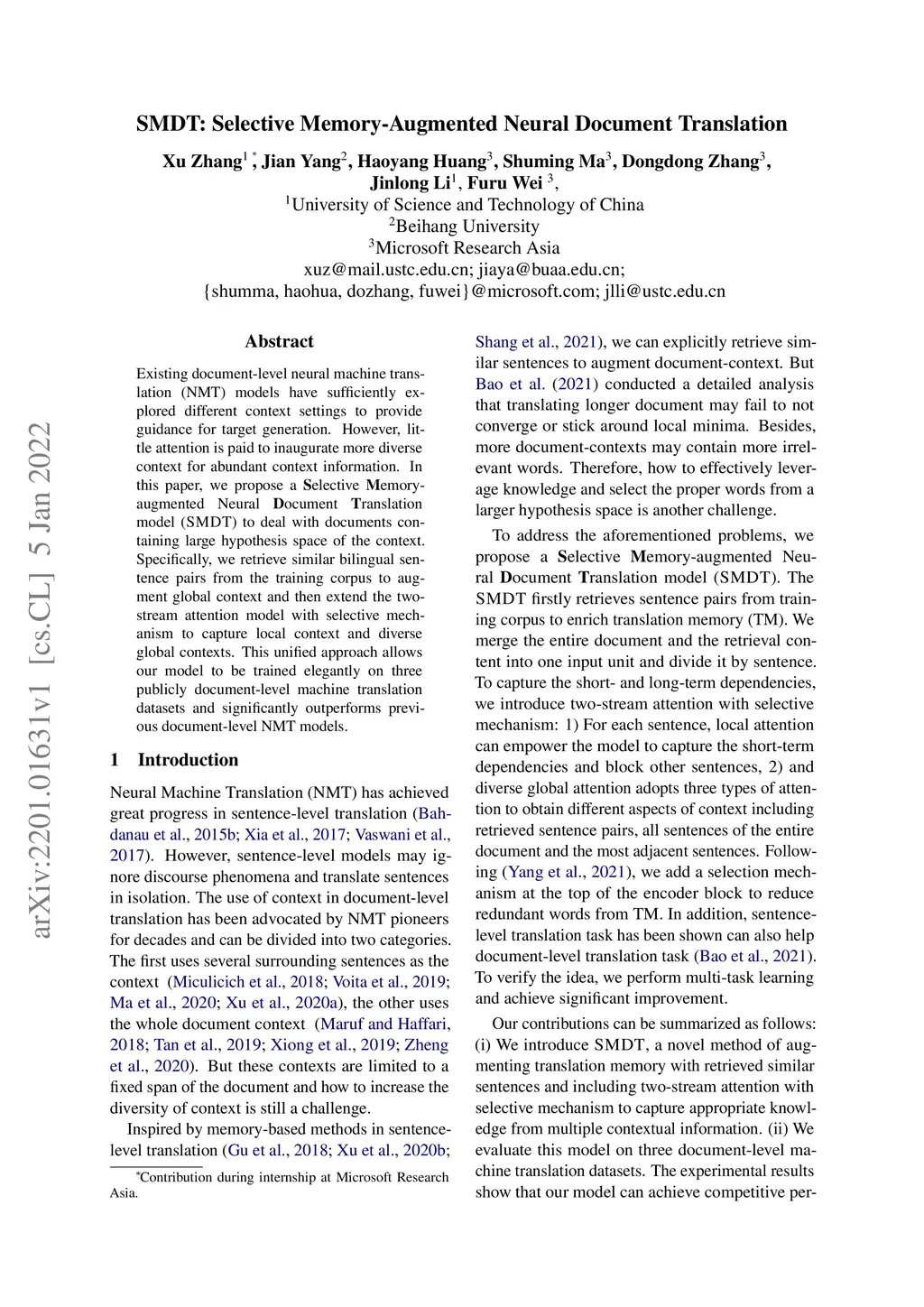SMDT: Selective Memory-Augmented Neural Document Translation