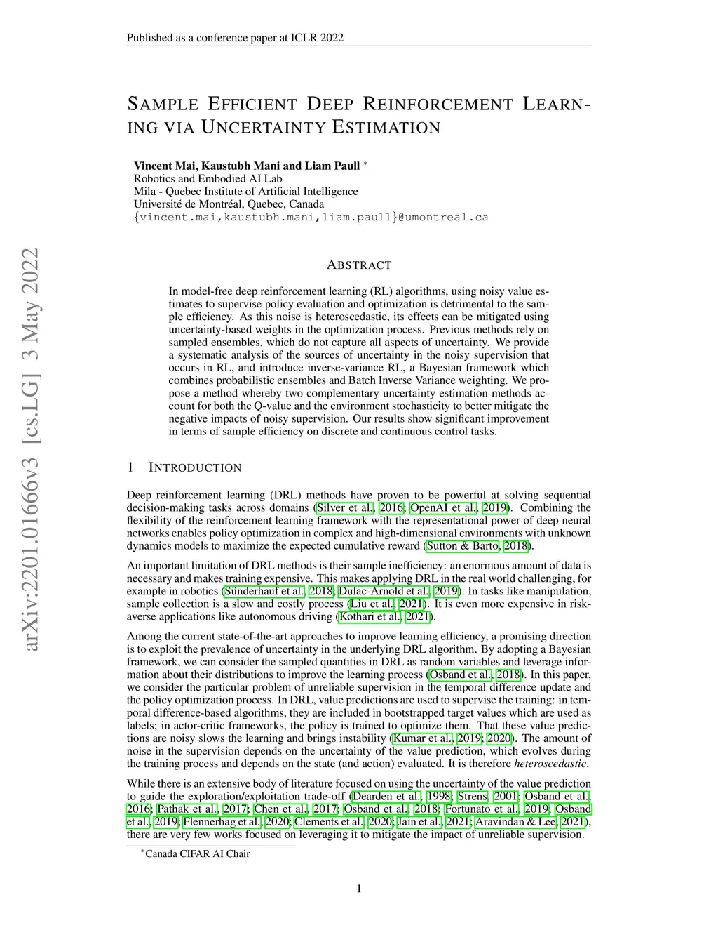 Sample Efficient Deep Reinforcement Learning via Uncertainty Estimation