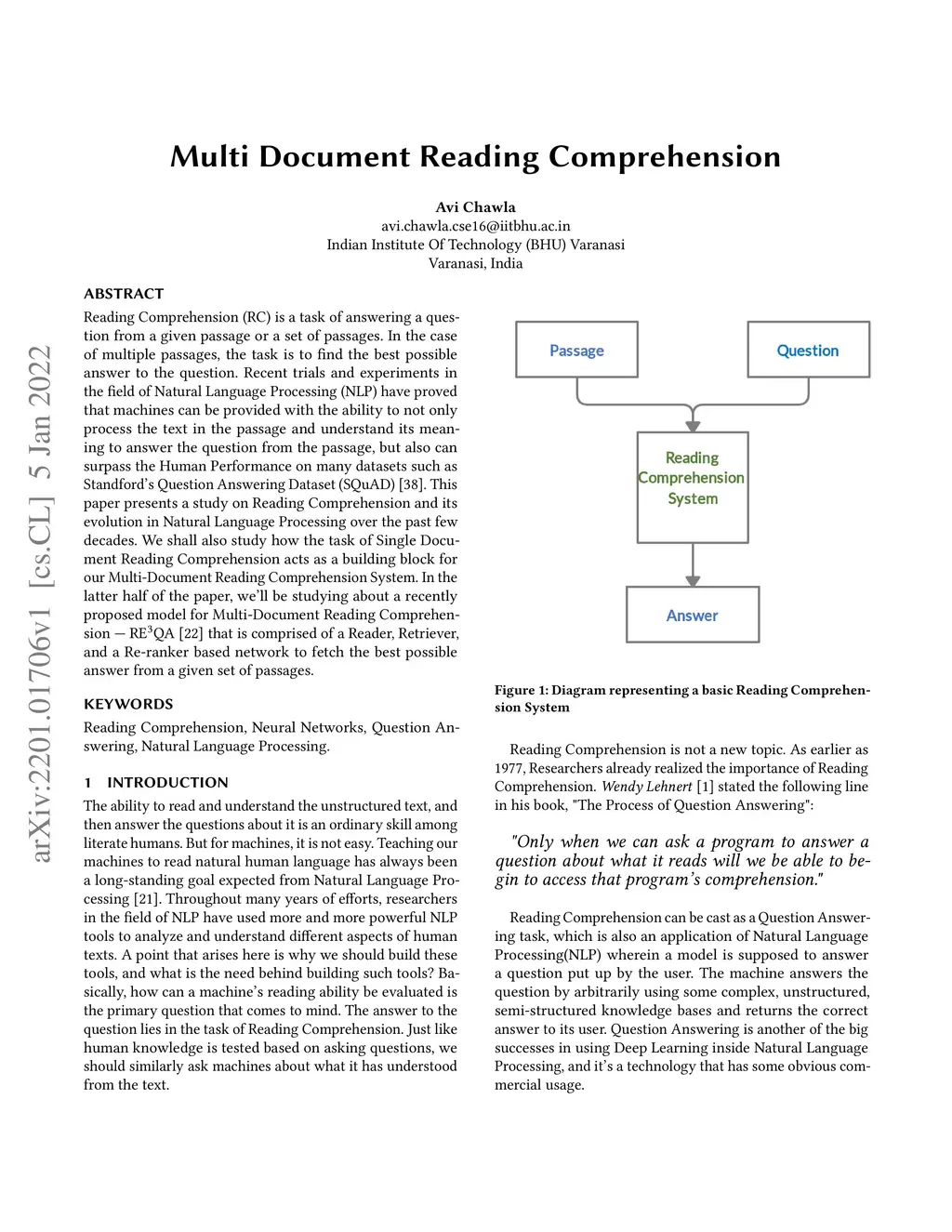 Reading Comprehension (RC) is a task of answering a question from a given passage or a set of passages. In the case of multiple passages, the task is to find the best possible answer to the question. Recent trials and experiments in the field of Natural Language Processing (NLP) have proved that machines can be provided with the ability to not only process the text in the passage and understand its meaning to answer the question from the passage, but also can surpass the Human Performance on many datasets such as Standford's Question Answering Dataset (SQuAD). This paper presents a study on Reading Comprehension and its evolution in Natural Language Processing over the past few decades. We shall also study how the task of Single Document Reading Comprehension acts as a building block for our Multi-Document Reading Comprehension System. In the latter half of the paper, we'll be studying about a recently proposed model for Multi-Document Reading Comprehension - RE3QA that is comprised of a Reader, Retriever, and a Re-ranker based network to fetch the best possible answer from a given set of passages.