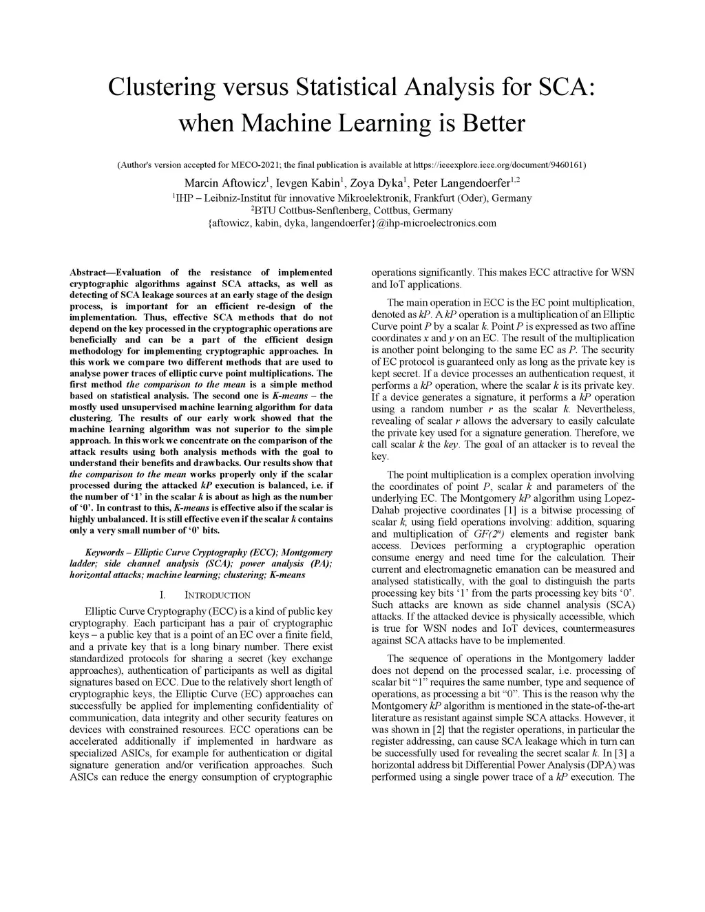 Evaluation of the resistance of implemented cryptographic algorithms against SCA attacks, as well as detecting of SCA leakage sources at an early stage of the design process, is important for an efficient re-design of the implementation. Thus, effective SCA methods that do not depend on the key processed in the cryptographic operations are beneficially and can be a part of the efficient design methodology for implementing cryptographic approaches. In this work we compare two different methods that are used to analyse power traces of elliptic curve point multiplications. The first method the comparison to the mean is a simple method based on statistical analysis. The second one is K-means - the mostly used unsupervised machine learning algorithm for data clustering. The results of our early work showed that the machine learning algorithm was not superior to the simple approach. In this work we concentrate on the comparison of the attack results using both analysis methods with the goal to understand their benefits and drawbacks. Our results show that the comparison to the mean works properly only if the scalar processed during the attacked kP execution is balanced, i.e. if the number of '1' in the scalar k is about as high as the number of '0'. In contrast to this, K-means is effective also if the scalar is highly unbalanced. It is still effective even if the scalar k contains only a very small number of '0' bits.