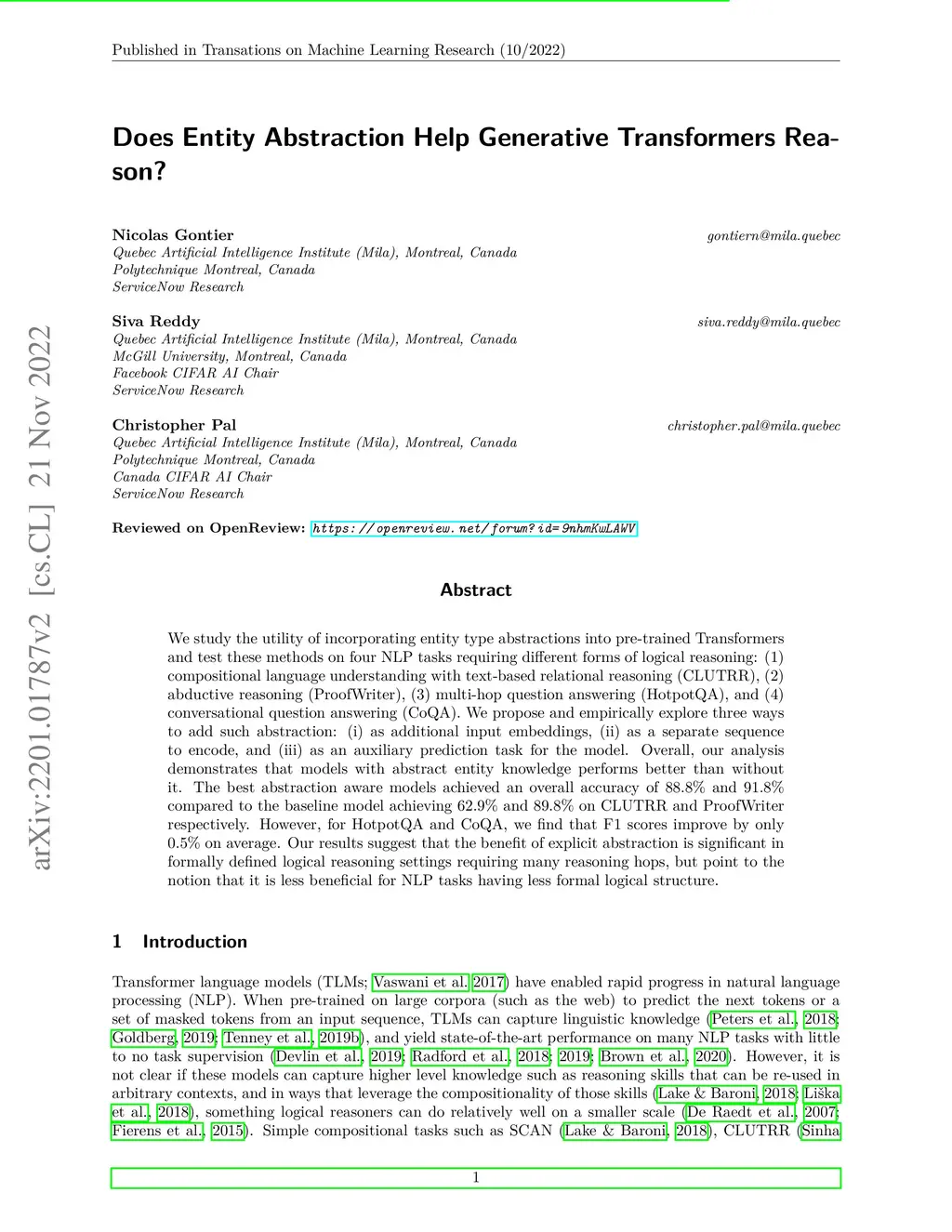 Does Entity Abstraction Help Generative Transformers Reason?