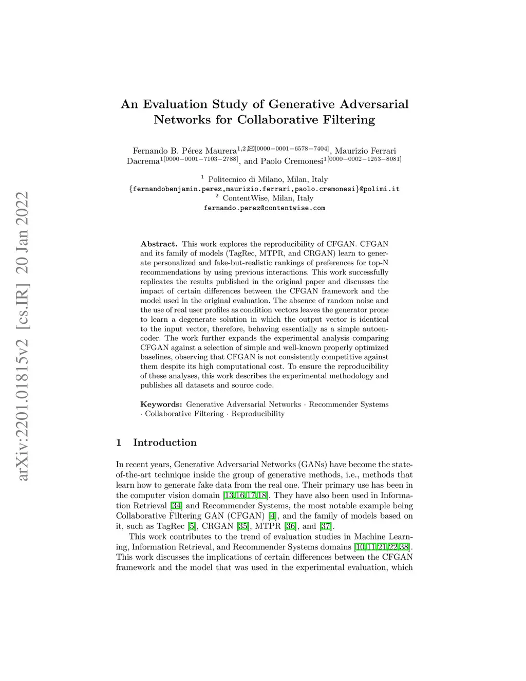 An Evaluation Study of Generative Adversarial Networks for Collaborative