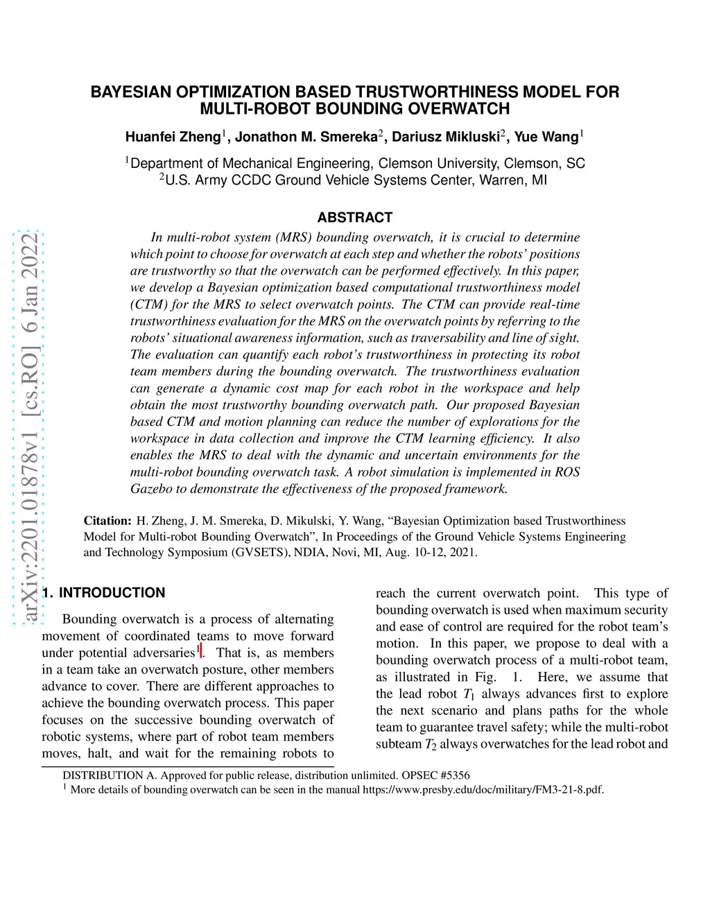 Bayesian Optimization Based Trustworthiness Model for Multi-robot