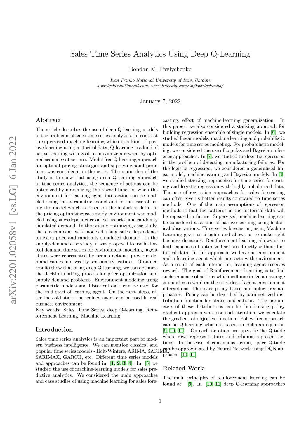 Sales Time Series Analytics Using Deep Q-Learning