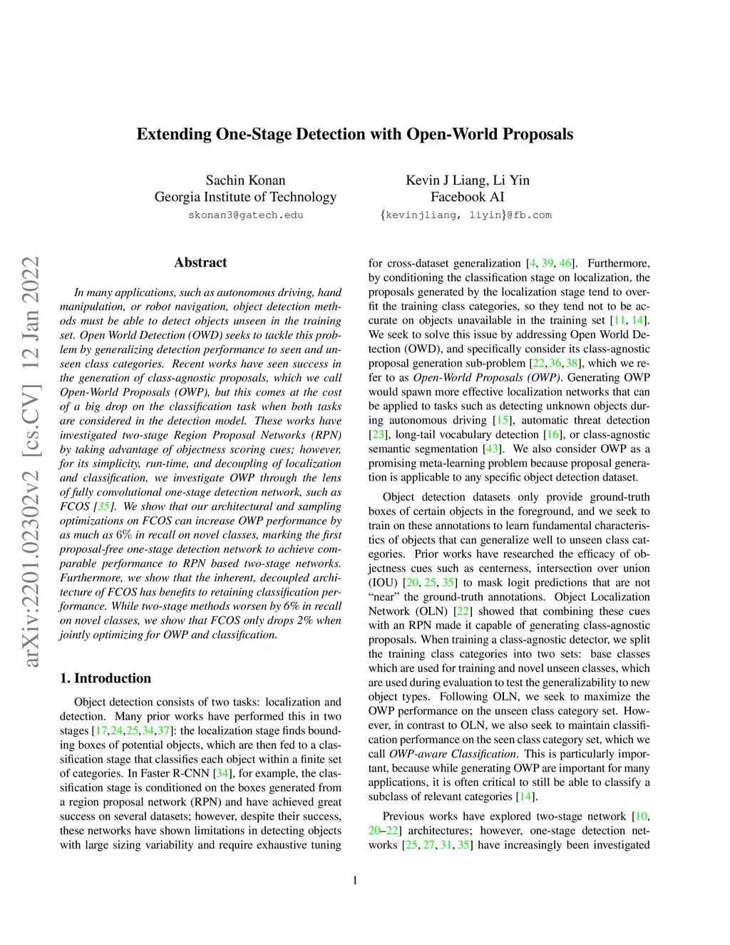 In many applications, such as autonomous driving, hand manipulation, or robot navigation, object detection methods must be able to detect objects unseen in the training set. Open World Detection(OWD) seeks to tackle this problem by generalizing detection performance to seen and unseen class categories. Recent works have seen success in the generation of class-agnostic proposals, which we call Open-World Proposals(OWP), but this comes at the cost of a big drop on the classification task when both tasks are considered in the detection model. These works have investigated two-stage Region Proposal Networks (RPN) by taking advantage of objectness scoring cues; however, for its simplicity, run-time, and decoupling of localization and classification, we investigate OWP through the lens of fully convolutional one-stage detection network, such as FCOS. We show that our architectural and sampling optimizations on FCOS can increase OWP performance by as much as 6% in recall on novel classes, marking the first proposal-free one-stage detection network to achieve comparable performance to RPN-based two-stage networks. Furthermore, we show that the inherent, decoupled architecture of FCOS has benefits to retaining classification performance. While two-stage methods worsen by 6% in recall on novel classes, we show that FCOS only drops 2% when jointly optimizing for OWP and classification.