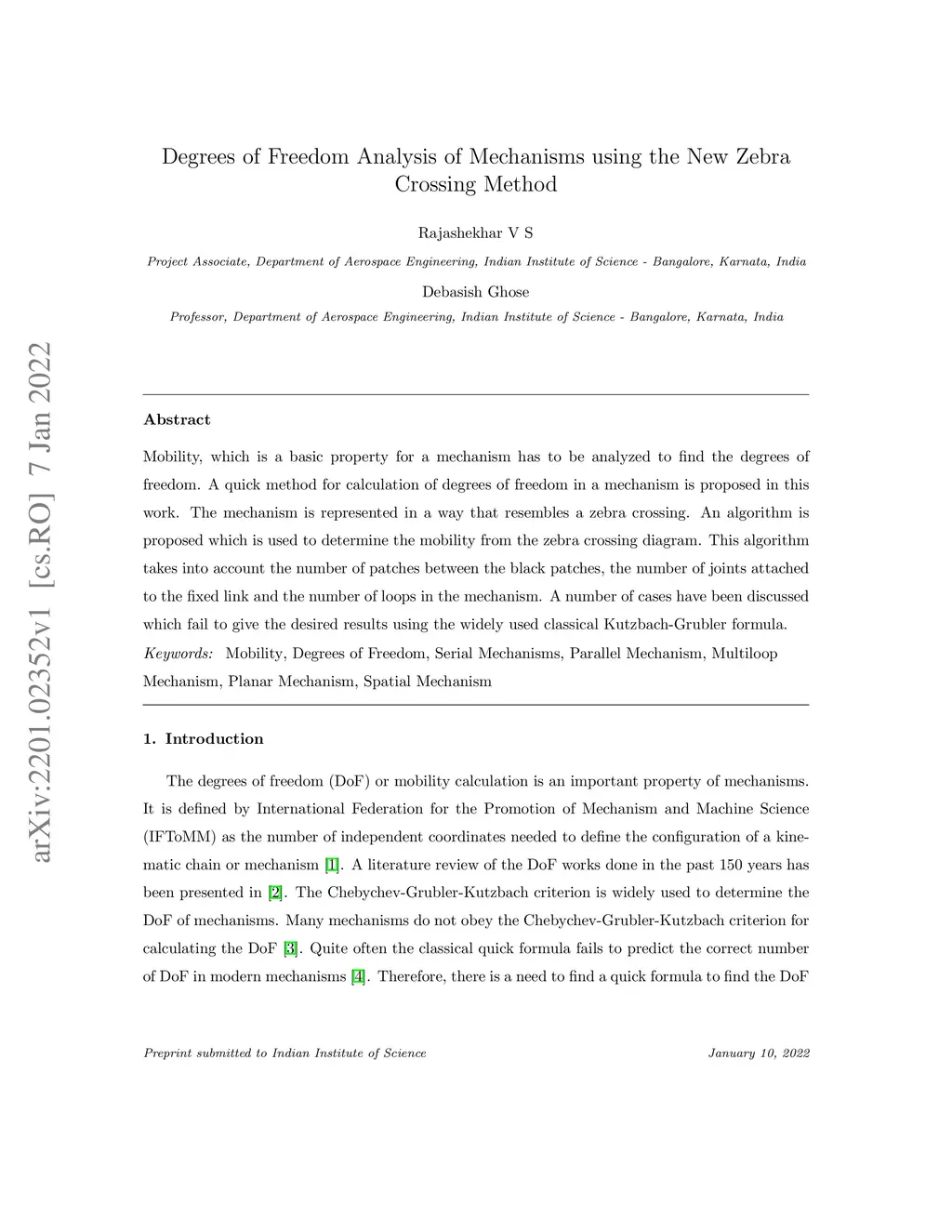 Degrees of Freedom Analysis of Mechanisms using the New Zebra Crossing