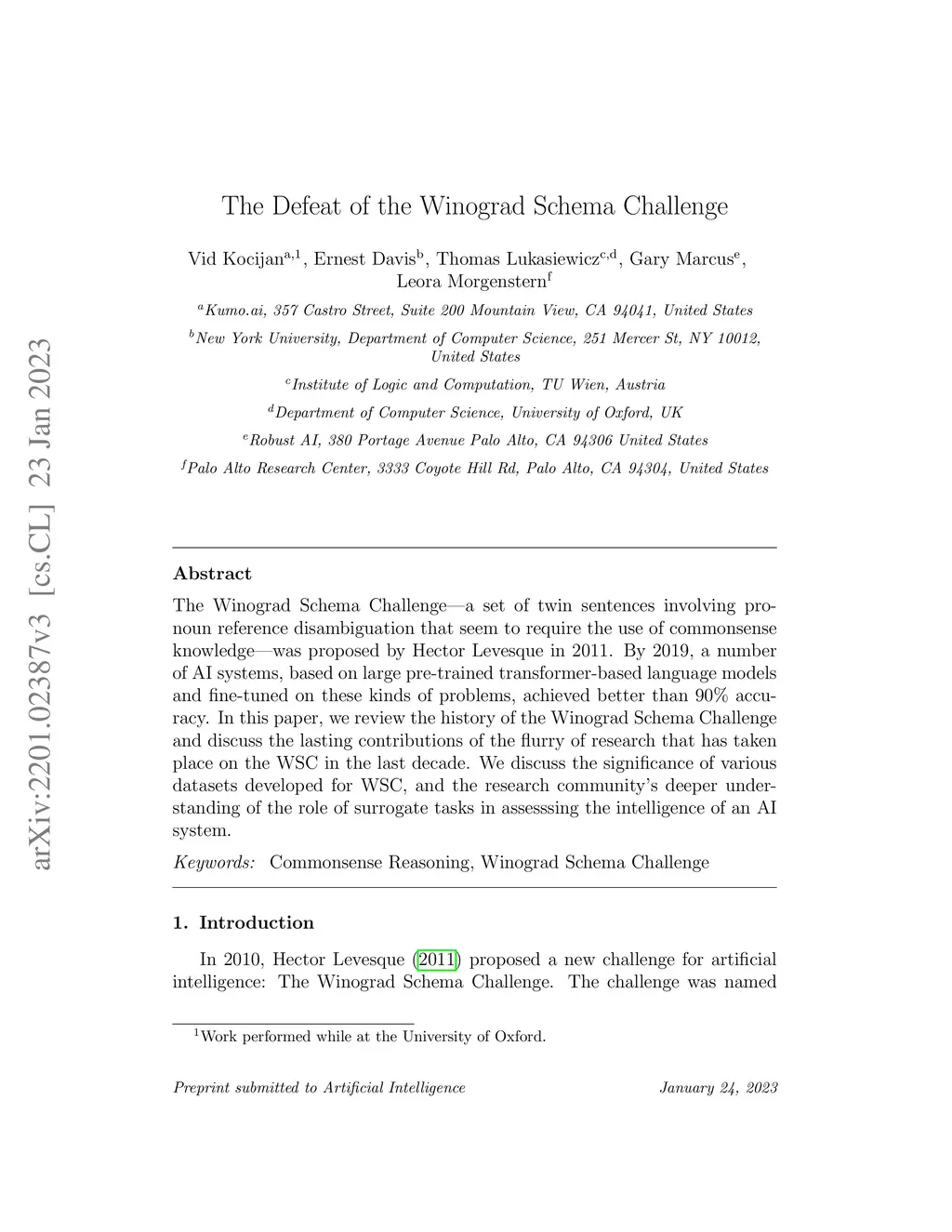 The Winograd Schema Challenge - a set of twin sentences involving pronoun reference disambiguation that seem to require the use of commonsense knowledge - was proposed by Hector Levesque in 2011. By 2019, a number of AI systems, based on large pre-trained transformer-based language models and fine-tuned on these kinds of problems, achieved better than 90% accuracy. In this paper, we review the history of the Winograd Schema Challenge and discuss the lasting contributions of the flurry of research that has taken place on the WSC in the last decade. We discuss the significance of various datasets developed for WSC, and the research community's deeper understanding of the role of surrogate tasks in assessing the intelligence of an AI system.