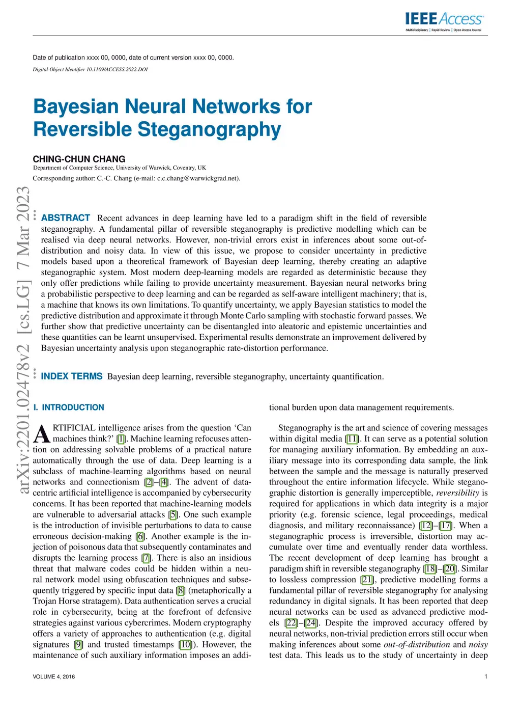 Recent advances in deep learning have led to a paradigm shift in reversible steganography. A fundamental pillar of reversible steganography is predictive modelling which can be realised via deep neural networks. However, non-trivial errors exist in inferences about some out-of-distribution and noisy data. In view of this issue, we propose to consider uncertainty in predictive models based upon a theoretical framework of Bayesian deep learning. Bayesian neural networks can be regarded as self-aware machinery; that is, a machine that knows its own limitations. To quantify uncertainty, we approximate the posterior predictive distribution through Monte Carlo sampling with stochastic forward passes. We further show that predictive uncertainty can be disentangled into aleatoric and epistemic uncertainties and these quantities can be learnt in an unsupervised manner. Experimental results demonstrate an improvement delivered by Bayesian uncertainty analysis upon steganographic capacity-distortion performance.