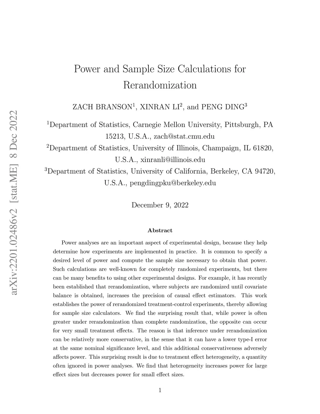 Power analyses are an important aspect of experimental design, because they help determine how experiments are implemented in practice. It is common to specify a desired level of power and compute the sample size necessary to obtain that power. Such calculations are well-known for completely randomized experiments, but there can be many benefits to using other experimental designs. For example, it has recently been established that rerandomization, where subjects are randomized until covariate balance is obtained, increases the precision of causal effect estimators. This work establishes the power of rerandomized treatment-control experiments, thereby allowing for sample size calculators. We find the surprising result that, while power is often greater under rerandomization than complete randomization, the opposite can occur for very small treatment effects. The reason is that inference under rerandomization can be relatively more conservative, in the sense that it can have a lower type-I error at the same nominal significance level, and this additional conservativeness adversely affects power. This surprising result is due to treatment effect heterogeneity, a quantity often ignored in power analyses. We find that heterogeneity increases power for large effect sizes but decreases power for small effect sizes.