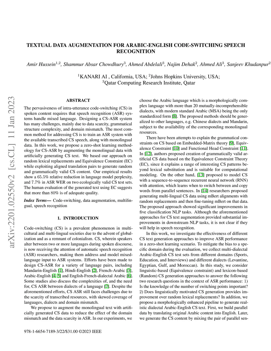 Textual Data Augmentation for Arabic-English Code-Switching Speech