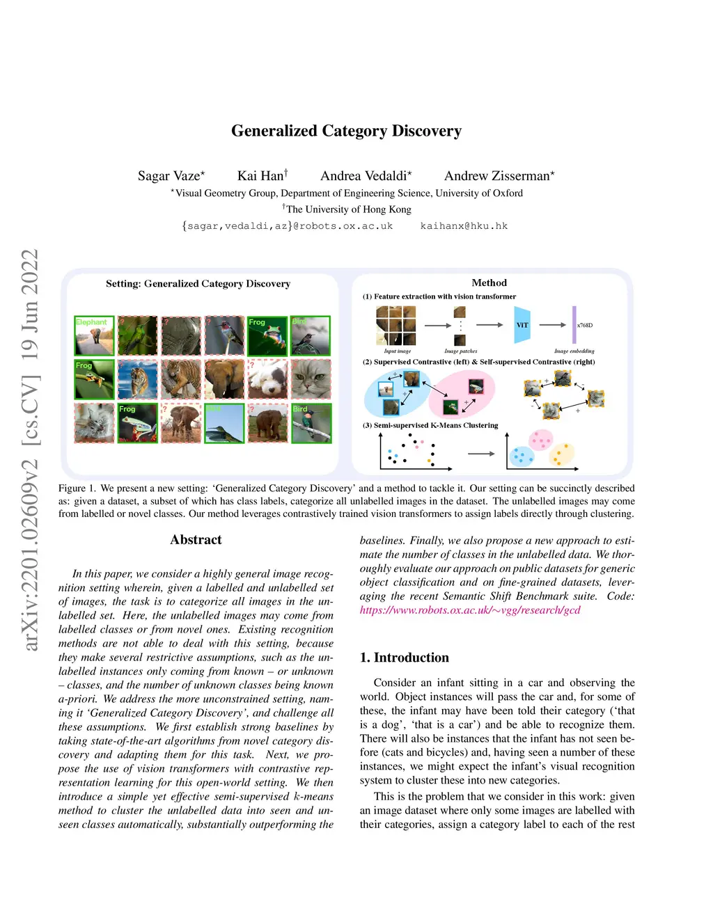 In this paper, we consider a highly general image recognition setting wherein, given a labelled and unlabelled set of images, the task is to categorize all images in the unlabelled set. Here, the unlabelled images may come from labelled classes or from novel ones. Existing recognition methods are not able to deal with this setting, because they make several restrictive assumptions, such as the unlabelled instances only coming from known - or unknown - classes, and the number of unknown classes being known a-priori. We address the more unconstrained setting, naming it 'Generalized Category Discovery', and challenge all these assumptions. We first establish strong baselines by taking state-of-the-art algorithms from novel category discovery and adapting them for this task. Next, we propose the use of vision transformers with contrastive representation learning for this open-world setting. We then introduce a simple yet effective semi-supervised -means method to cluster the unlabelled data into seen and unseen classes automatically, substantially outperforming the baselines. Finally, we also propose a new approach to estimate the number of classes in the unlabelled data. We thoroughly evaluate our approach on public datasets for generic object classification and on fine-grained datasets, leveraging the recent Semantic Shift Benchmark suite. Project page at https://www.robots.ox.ac.uk/~vgg/research/gcd
