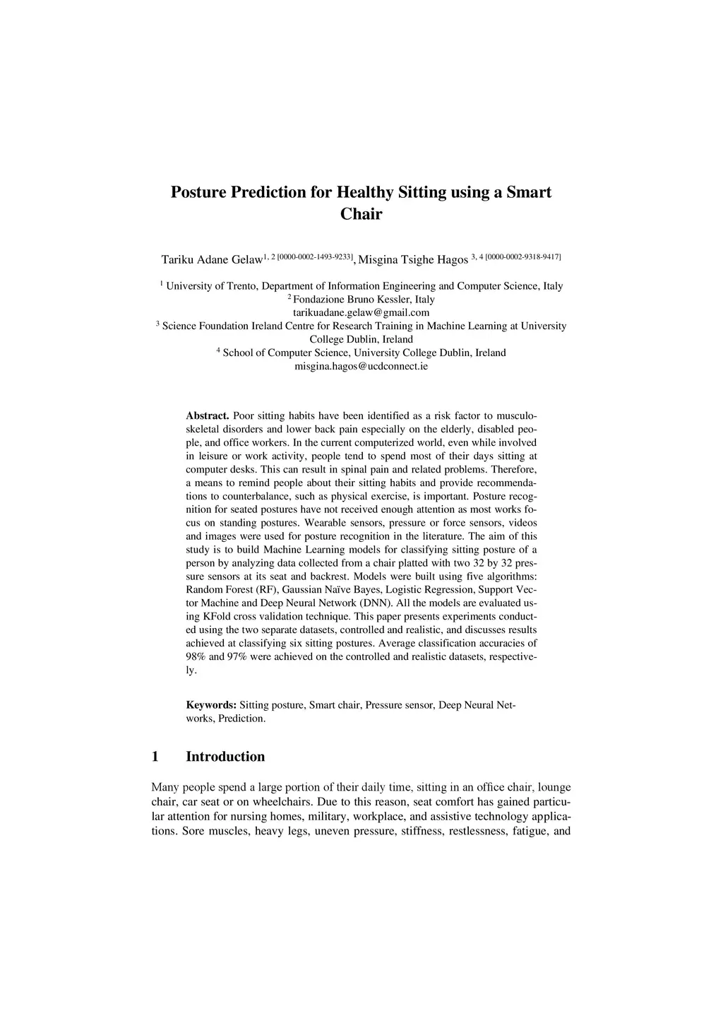 Posture Prediction for Healthy Sitting using a Smart Chair