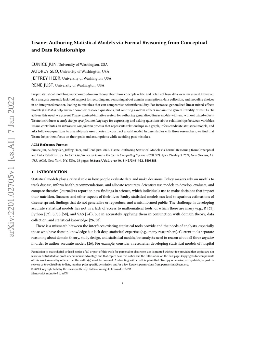 Tisane: Authoring Statistical Models via Formal Reasoning from