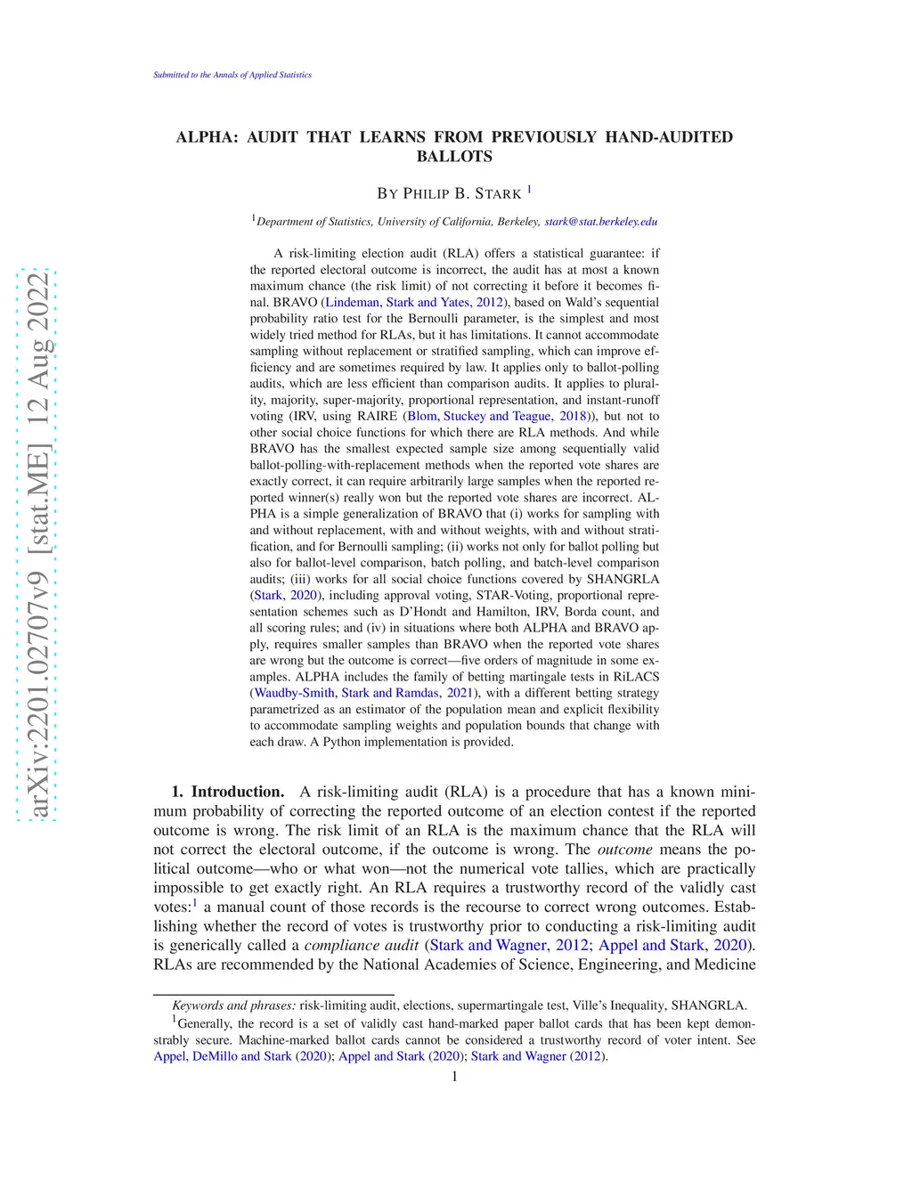 ALPHA: Audit that Learns from Previously Hand-Audited Ballots
