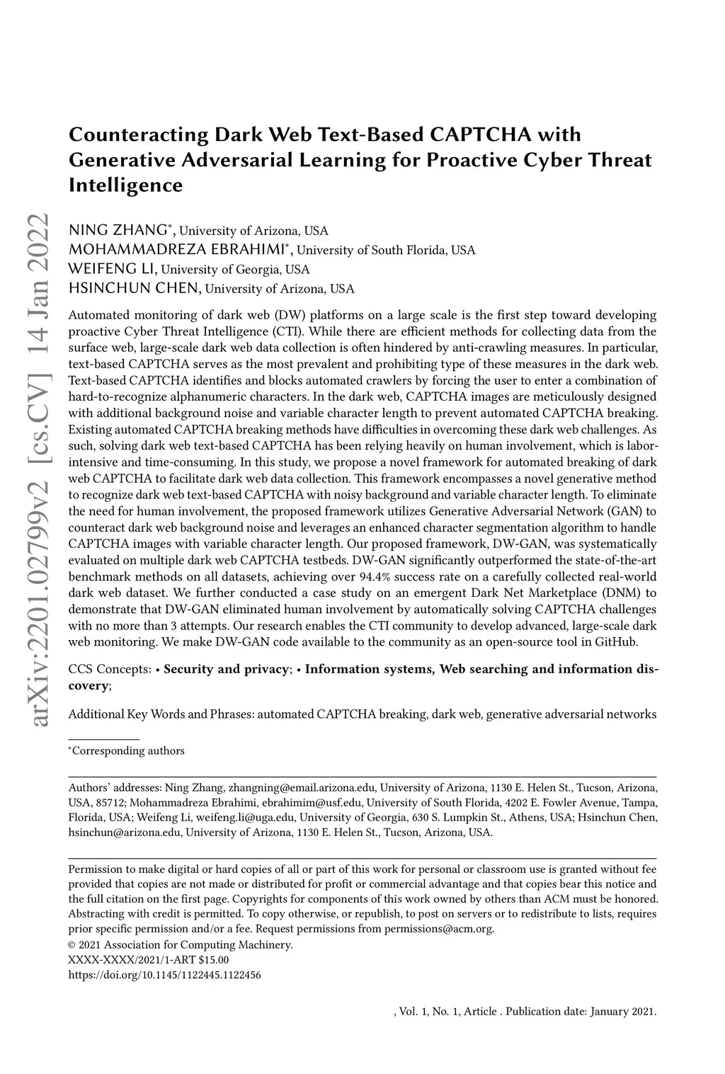 Counteracting Dark Web Text-Based CAPTCHA with Generative Adversarial