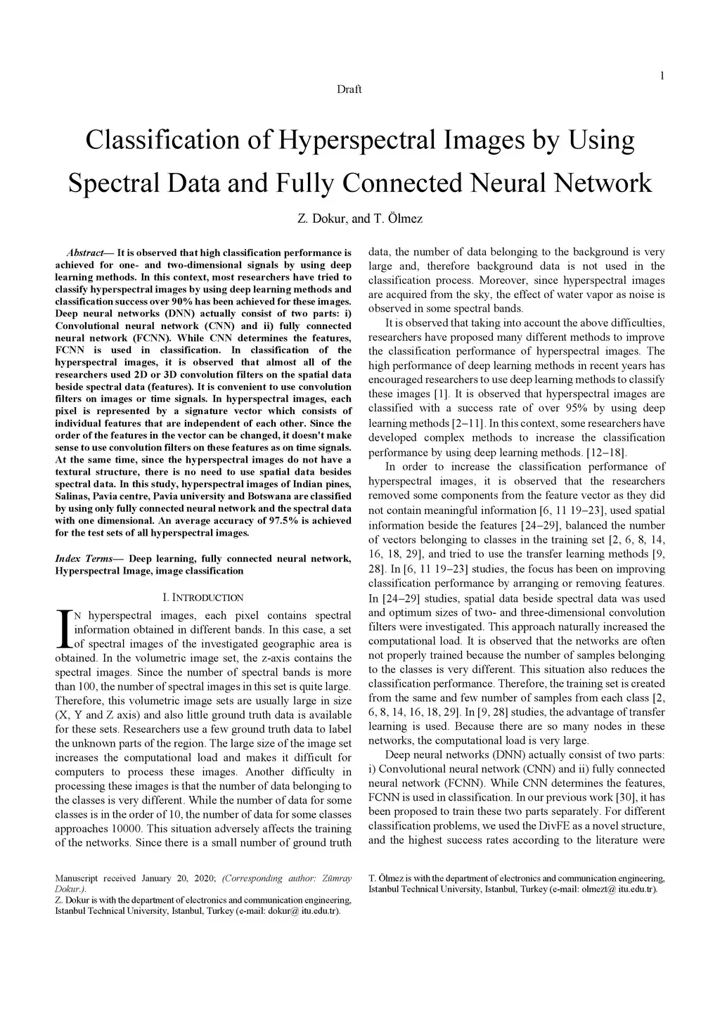 Classification of Hyperspectral Images by Using Spectral Data and Fully
