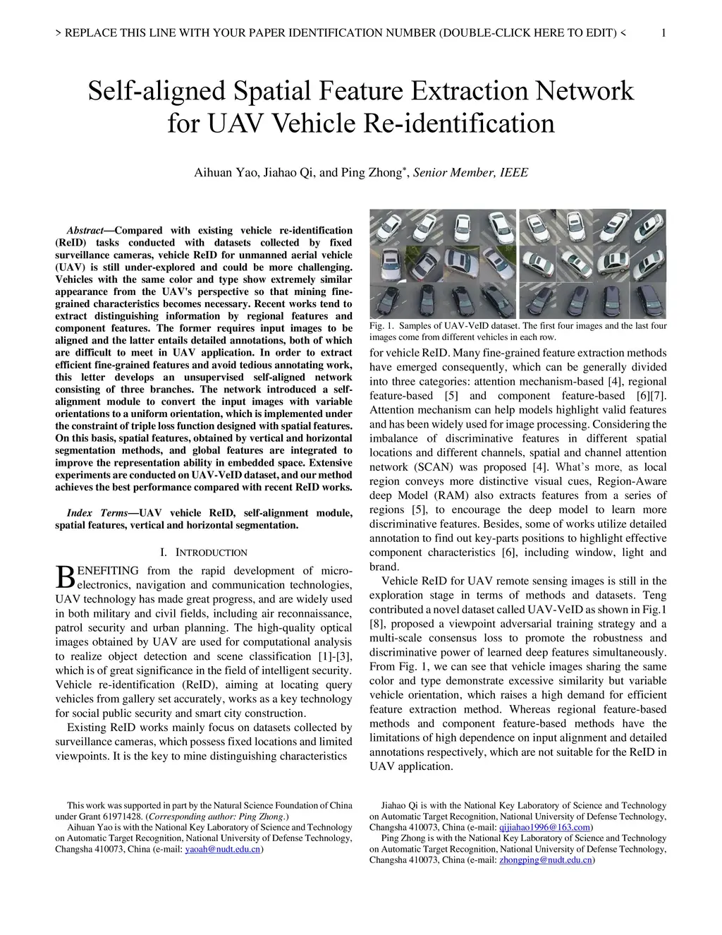 Self-aligned Spatial Feature Extraction Network for UAV Vehicle