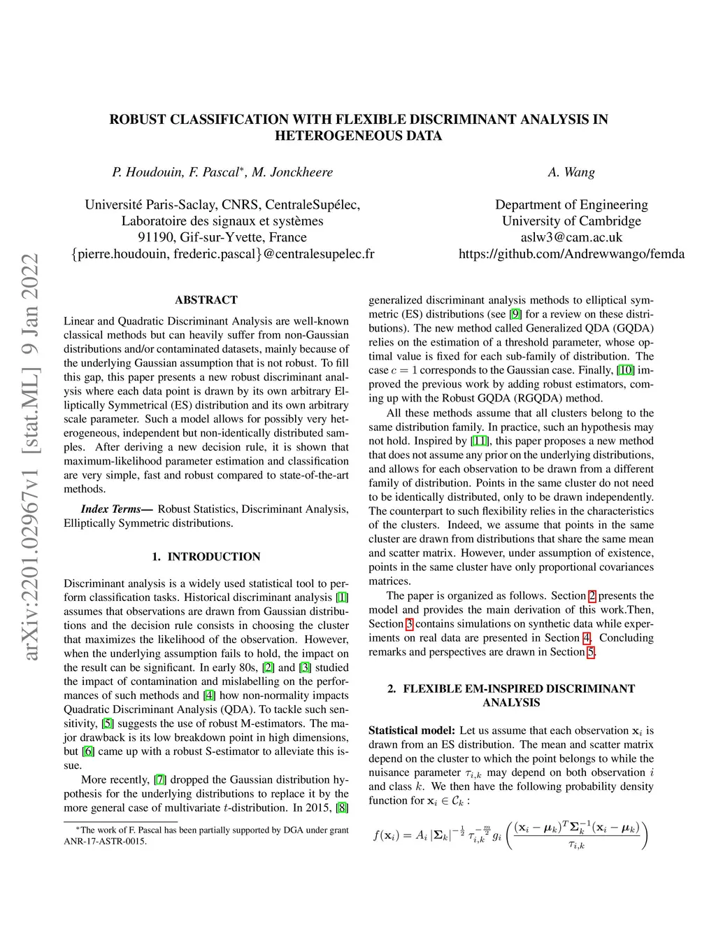 Linear and Quadratic Discriminant Analysis are well-known classical methods but can heavily suffer from non-Gaussian distributions and/or contaminated datasets, mainly because of the underlying Gaussian assumption that is not robust. To fill this gap, this paper presents a new robust discriminant analysis where each data point is drawn by its own arbitrary Elliptically Symmetrical (ES) distribution and its own arbitrary scale parameter. Such a model allows for possibly very heterogeneous, independent but non-identically distributed samples. After deriving a new decision rule, it is shown that maximum-likelihood parameter estimation and classification are very simple, fast and robust compared to state-of-the-art methods.