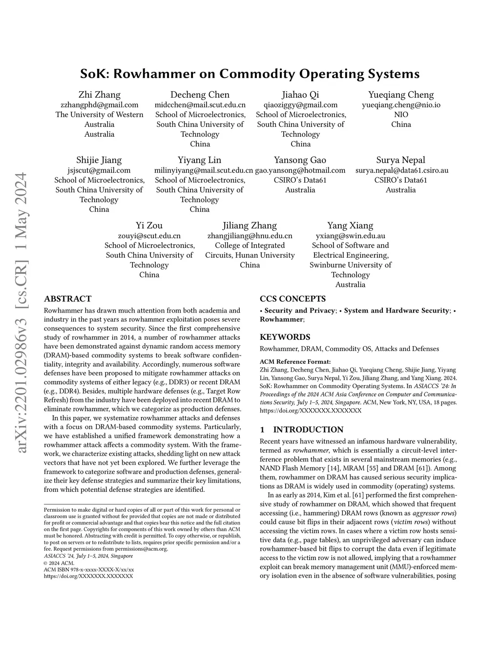 SoK: Rowhammer on Commodity Operating Systems