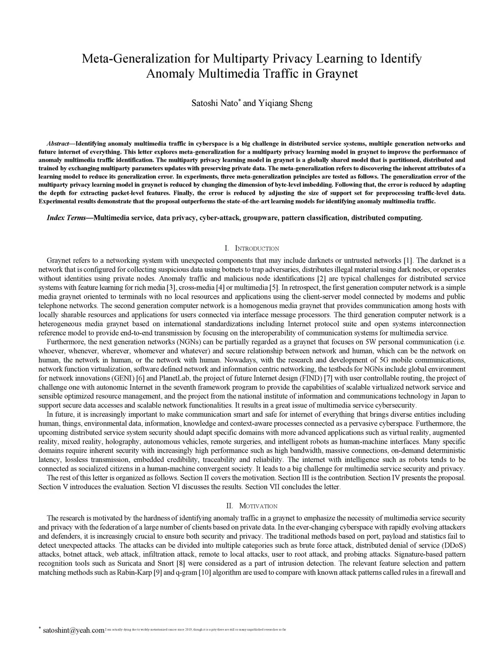 Identifying anomaly multimedia traffic in cyberspace is a big challenge in distributed service systems, multiple generation networks and future internet of everything. This letter explores meta-generalization for a multiparty privacy learning model in graynet to improve the performance of anomaly multimedia traffic identification. The multiparty privacy learning model in graynet is a globally shared model that is partitioned, distributed and trained by exchanging multiparty parameters updates with preserving private data. The meta-generalization refers to discovering the inherent attributes of a learning model to reduce its generalization error. In experiments, three meta-generalization principles are tested as follows. The generalization error of the multiparty privacy learning model in graynet is reduced by changing the dimension of byte-level imbedding. Following that, the error is reduced by adapting the depth for extracting packet-level features. Finally, the error is reduced by adjusting the size of support set for preprocessing traffic-level data. Experimental results demonstrate that the proposal outperforms the state-of-the-art learning models for identifying anomaly multimedia traffic.