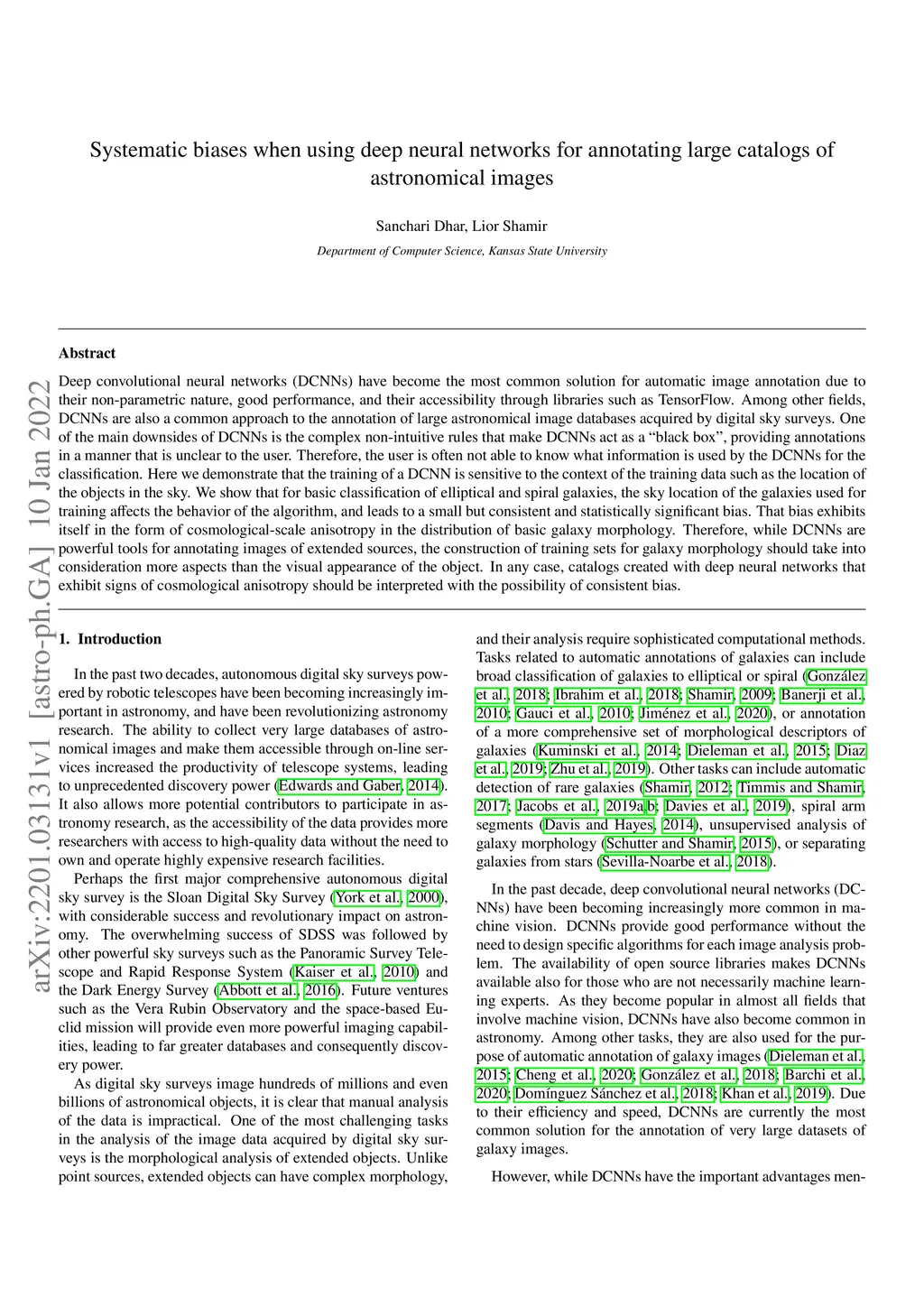 Deep convolutional neural networks (DCNNs) have become the most common solution for automatic image annotation due to their non-parametric nature, good performance, and their accessibility through libraries such as TensorFlow. Among other fields, DCNNs are also a common approach to the annotation of large astronomical image databases acquired by digital sky surveys. One of the main downsides of DCNNs is the complex non-intuitive rules that make DCNNs act as a ``black box", providing annotations in a manner that is unclear to the user. Therefore, the user is often not able to know what information is used by the DCNNs for the classification. Here we demonstrate that the training of a DCNN is sensitive to the context of the training data such as the location of the objects in the sky. We show that for basic classification of elliptical and spiral galaxies, the sky location of the galaxies used for training affects the behavior of the algorithm, and leads to a small but consistent and statistically significant bias. That bias exhibits itself in the form of cosmological-scale anisotropy in the distribution of basic galaxy morphology. Therefore, while DCNNs are powerful tools for annotating images of extended sources, the construction of training sets for galaxy morphology should take into consideration more aspects than the visual appearance of the object. In any case, catalogs created with deep neural networks that exhibit signs of cosmological anisotropy should be interpreted with the possibility of consistent bias.