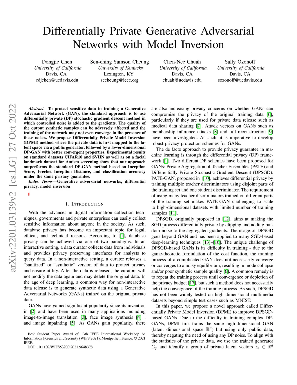 To protect sensitive data in training a Generative Adversarial Network (GAN), the standard approach is to use differentially private (DP) stochastic gradient descent method in which controlled noise is added to the gradients. The quality of the output synthetic samples can be adversely affected and the training of the network may not even converge in the presence of these noises. We propose Differentially Private Model Inversion (DPMI) method where the private data is first mapped to the latent space via a public generator, followed by a lower-dimensional DP-GAN with better convergent properties. Experimental results on standard datasets CIFAR10 and SVHN as well as on a facial landmark dataset for Autism screening show that our approach outperforms the standard DP-GAN method based on Inception Score, Fr\échet Inception Distance, and classification accuracy under the same privacy guarantee.