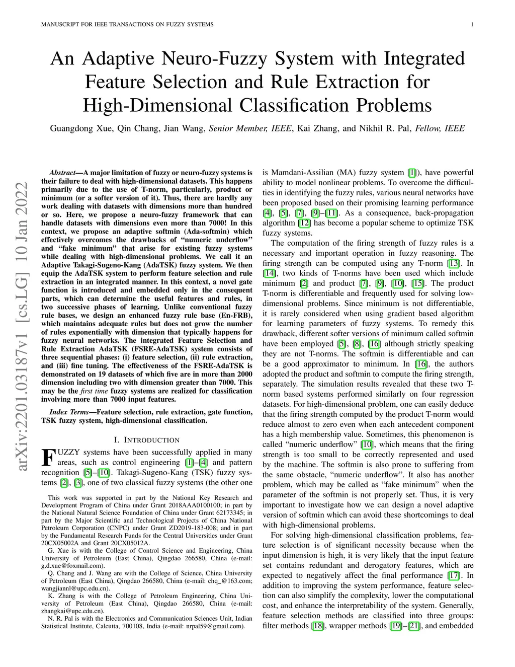 An Adaptive Neuro-Fuzzy System with Integrated Feature Selection and