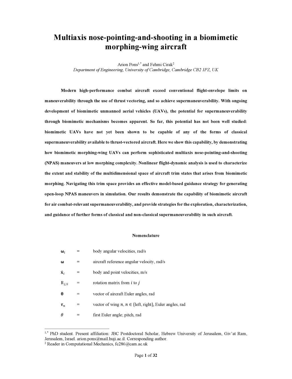 Multiaxis nose-pointing-and-shooting in a biomimetic morphing-wing