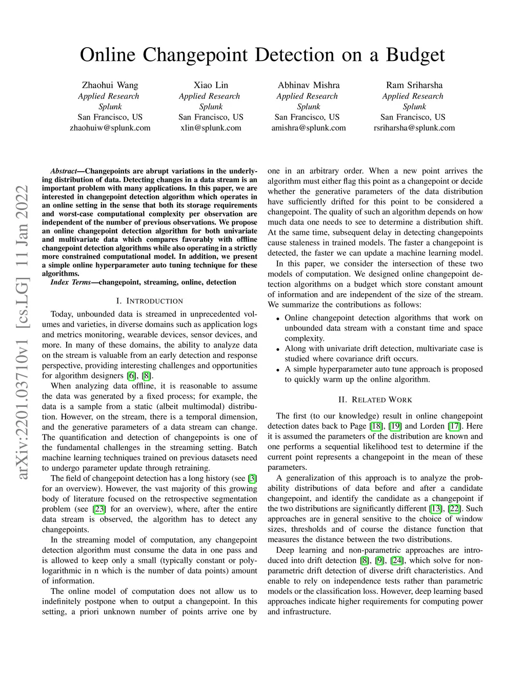 Changepoints are abrupt variations in the underlying distribution of data. Detecting changes in a data stream is an important problem with many applications. In this paper, we are interested in changepoint detection algorithms which operate in an online setting in the sense that both its storage requirements and worst-case computational complexity per observation are independent of the number of previous observations. We propose an online changepoint detection algorithm for both univariate and multivariate data which compares favorably with offline changepoint detection algorithms while also operating in a strictly more constrained computational model. In addition, we present a simple online hyperparameter auto tuning technique for these algorithms.
