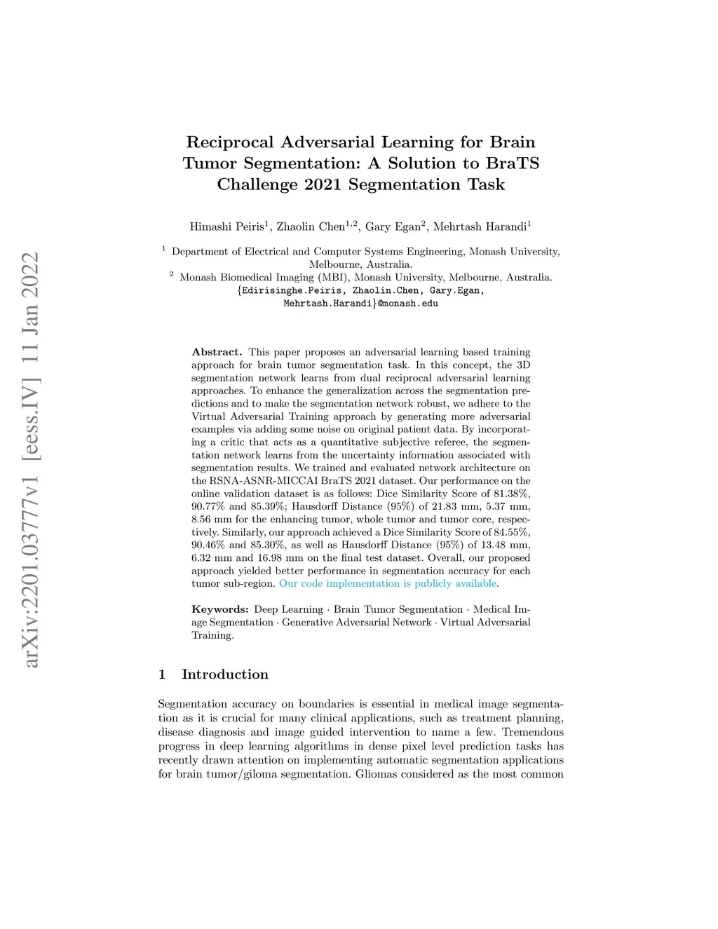 Reciprocal Adversarial Learning for Brain Tumor Segmentation: A Solution