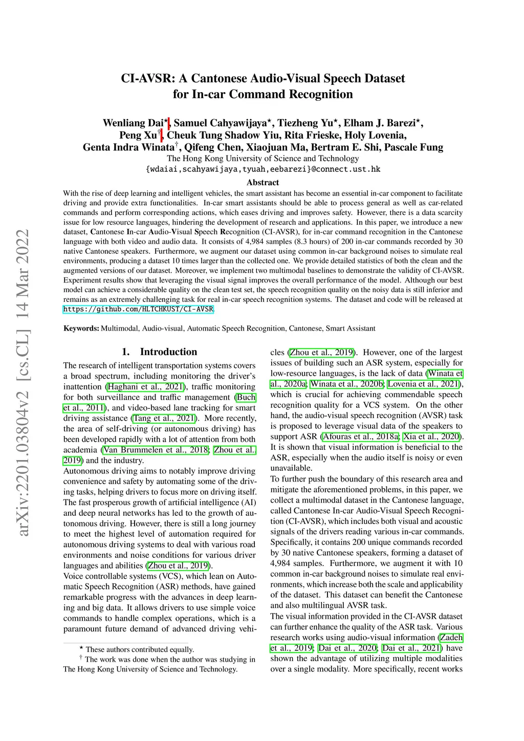 CI-AVSR: A Cantonese Audio-Visual Speech Dataset for In-car Command