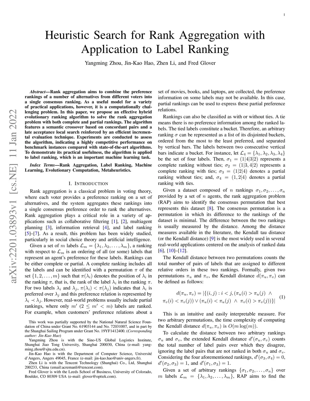 Heuristic Search for Rank Aggregation with Application to Label Ranking