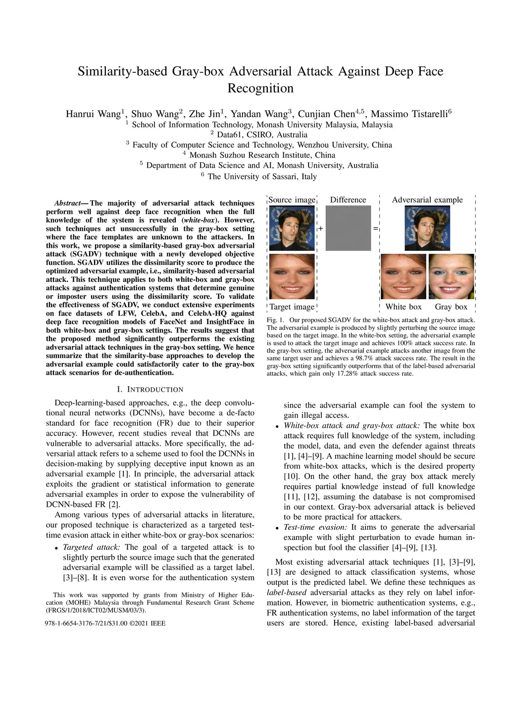 Similarity-based Gray-box Adversarial Attack Against Deep Face