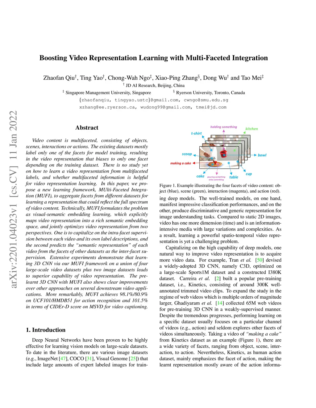 Boosting Video Representation Learning with Multi-Faceted Integration